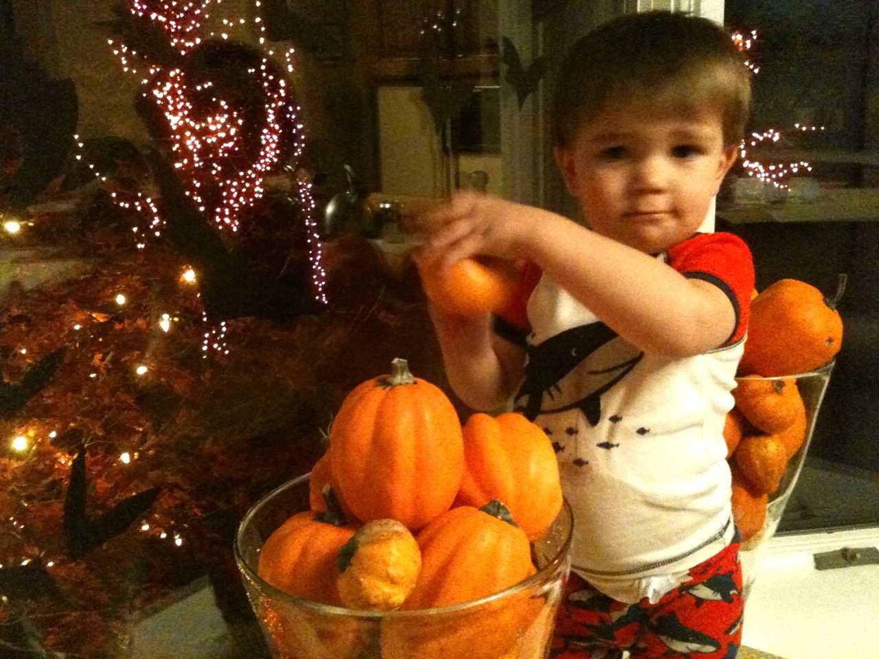 Liam wanders our own Indoor Pumpkin Patch looking for just the right one..